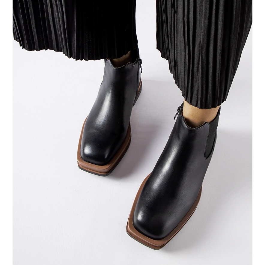 Tarquinia -saappaat yhdistävät klassisen leikkauksen, jossa on nykyaikaiset yksityiskohdat - yksinkertainen, tyylikäs muotoilu vastaa sekä arjen tyyliä (farkut, parkatakki) että tyylikkämpiä sarjoja (Cigarillos -housut, takki). Neliön nenä ja musta, kumipohja antavat heille modernin hahmon ja beige aksentit lämmittävät hienovaraisesti niiden ulkonäköä.