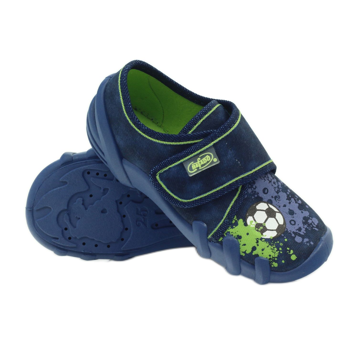 Yksityiskohdat: Tarranauhatossut jalkapalloilija Befado 273x237 vihreä tummansininen