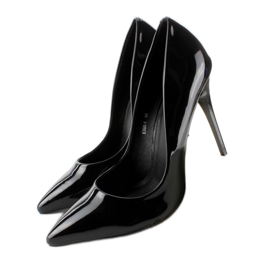 Tämä on täydellinen valinta naisille, jotka haluavat lisätä tyyliinsä hieman eleganssia ja aistillisuutta - E396 Mustat sileät mustat patenttikorkeat. Näistä ainutlaatuisista kengistä, jotka on luotu nykyaikaisia naisia ajatellen, tulee varmasti jokaisen vaatekaapin välttämätön osa.