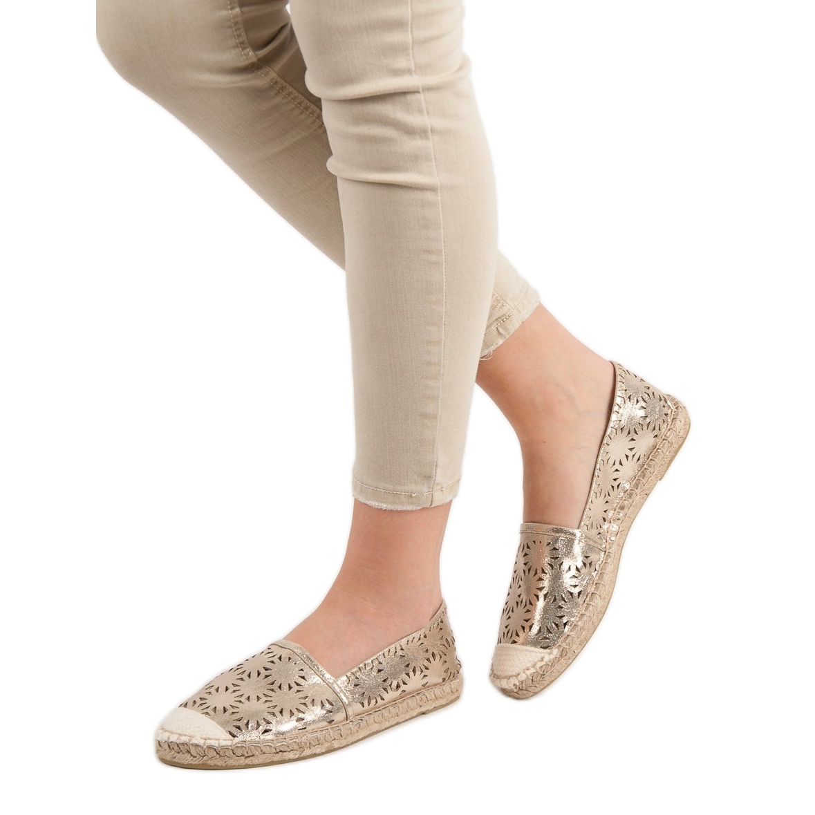 Espadrilleille on ominaista harjakattoinen kuvio, joka ei vain kiinnitä huomiota, vaan mahdollistaa myös oikean ilmankierron. Niiden tunnusomainen synteettisestä materiaalista valmistettu pohja lisää keveyttä mihin tahansa tyyliin ja korostaa täydellisesti kesäistä, rentoa ilmettä.