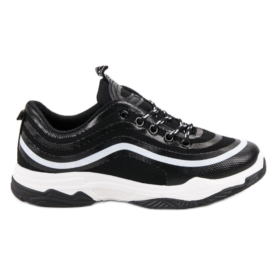 Mustat urheilukengät, joissa on paksu pohja, eivät vain lisää tyyliä, vaan myös hoikentavat vartaloasi optisesti. Pehmeiden, sisäänrakennettujen korkokenkien ja mukavan 3,5 cm korkean alustan ansiosta tunnet olosi itsevarmaksi ja mukavaksi koko päivän, riippumatta siitä oletko menossa harjoitteluun, kävelylle tai tapaamiseen ystävien kanssa.