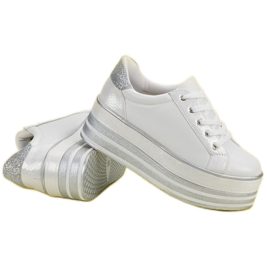 Löydä ainutlaatuiset Weide-brändin alustalenkkarit, joissa yhdistyvät täydellisesti tyyli ja mukavuus. Nämä valkoiset glitterkengät ovat täydellinen valinta kaikille, jotka haluavat erottua joukosta. 6 cm korkean alustan ansiosta tennarit eivät vain optisesti pidennä jalkojasi, vaan myös lisäävät ainutlaatuista luonnetta mihin tahansa tyyliin.