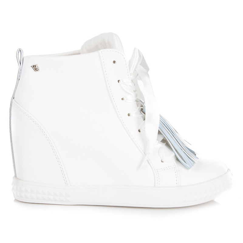 Tennarit on asetettu vakaalle 10 cm korkealle kiilalle, joka lisää muutaman senttimetrin mukavuudesta tinkimättä. Kenkien sisäpuoli on vuorattu luonnonnahalla, mikä tekee niistä mukavat käyttää jopa koko päivän. Lisäetuna ovat hapsut, jotka antavat niille luonnetta ja tekevät niistä ainutlaatuisen elementin mihin tahansa tyyliin.