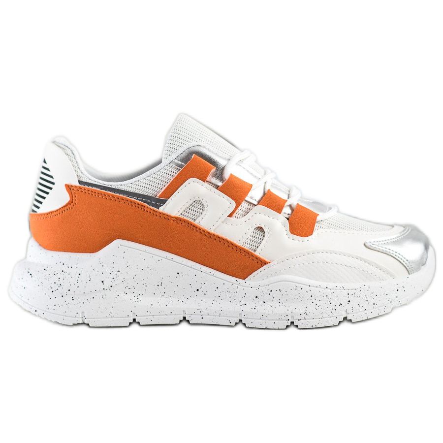 Tutustu mukavuuteen ja tyyliin valkoisilla Ideal Shoes -lenkkarilla, joissa on oranssi sisäosa! Nämä naisten urheilukengät ovat täydellinen valinta jokapäiväiseen käyttöön, ja ne sopivat täydellisesti arkimuodin uusimpiin trendeihin. Ne on valmistettu korkealaatuisesta ekologisesta nahasta, ja niille on ominaista tyylikäs, minimalistinen muotoilu ja pyöristetty nenä, joka takaa käyttömukavuuden koko päivän.