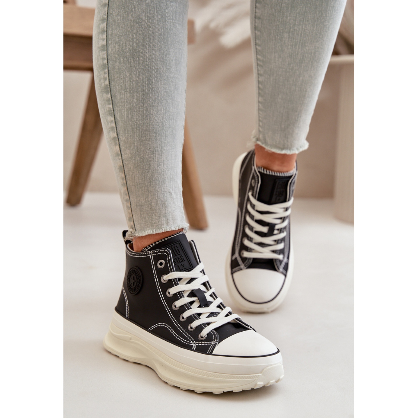 Sneakers -malli Big Star OO274063 Black - askel tyyliin on ihanteellinen ehdotus naisille, jotka arvostavat mukavuuden yhdistelmää muodikkaalla ilmeellä. Nämä mustan laadun PU -materiaalista valmistetut mustat lenkkarit jäljittelevät täydellisesti luonnollista ihoa, mikä antaa heille ainutlaatuisen luonteen. Klassinen nauhoitusmuoto ja pyöristetty nenä tekevät tästä jalkineesta ajatonta ja vastaa monia tyylejä.