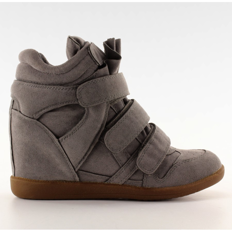 Mokkalenkkarit pehmusteella 6039 D. Harmaa - harmaat, tyylikkäät ja mukavat tennarit, joissa on piilokiila (8 cm). Valmistettu ekologisesta mokkanahkasta, kiinnitetty leveillä tarranauhalla, paksulla kielekkeellä ja pehmeällä tyynyllä, joka korostaa niiden luonnetta ja parantaa käyttömukavuutta. Täydellinen niille, jotka etsivät urbaania ilmettä lisäkorkeudella säilyttäen samalla mukavuuden.
