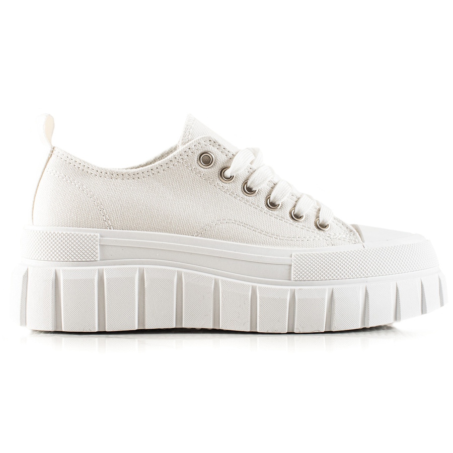 Muovisella kulutuspinnalla varustettu pohja tarjoaa hyvän pidon, mikä tekee niistä ihanteelliset jalkineet jokapäiväiseen toimintaan. Pyöreä kärki ja lisäkuvioiden puute tekevät tennareista tyylikkäitä ja universaaleja - voit yhdistää ne helposti eri tyyleihin.