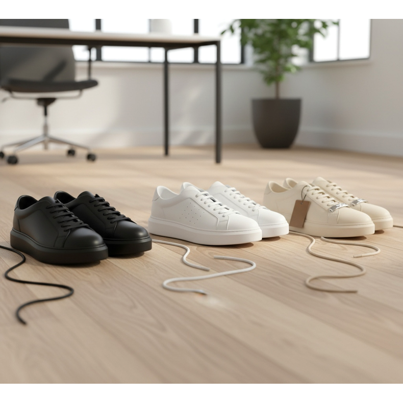 Kun valitset lenkkarit toimistoon, valitse minimalistiset mallit hillityissä väreissä. Valkoiset, mustat, beige- tai harmaat lenkkarit yksinkertaisella tyylillä ovat turvallisin valinta - ne ovat riittävän hienovaraisia, jotta ne eivät hallitse muuta tyyliä, ja samalla lisäävät siihen modernia ilmettä.