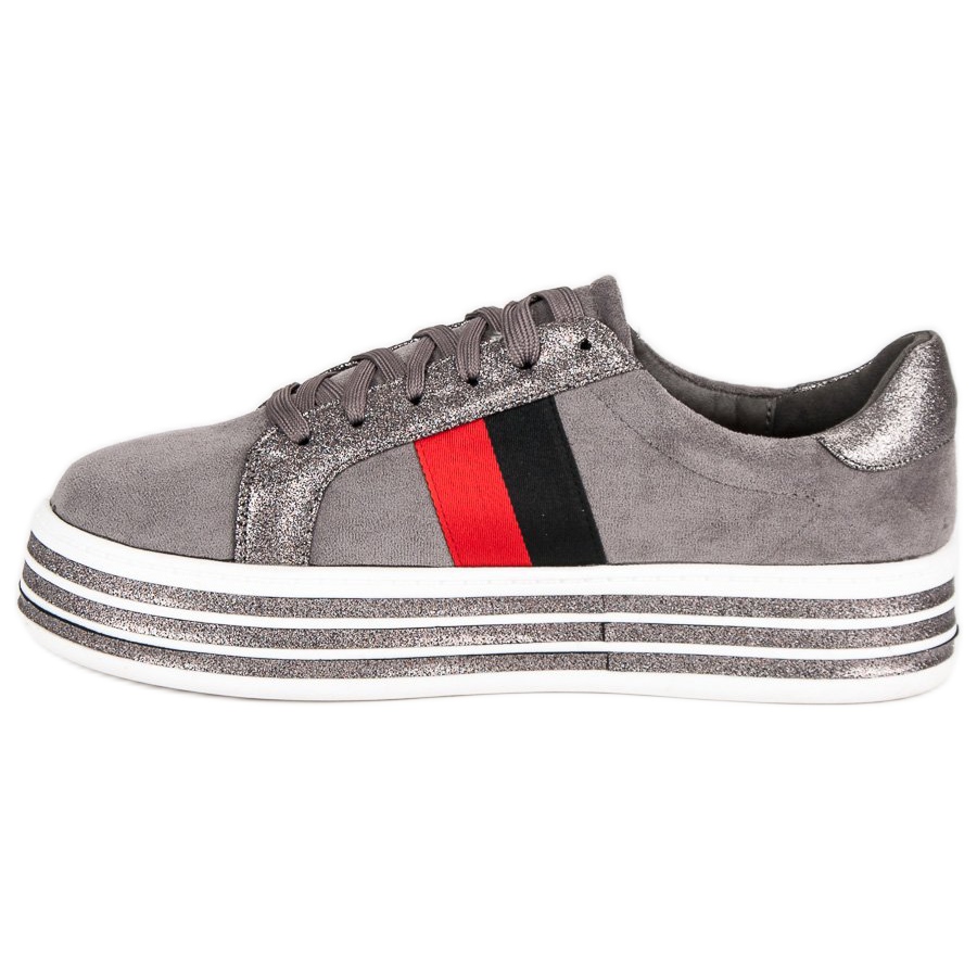 Etsitkö jalkineita, joissa mukavuus yhdistyy muodikkaaseen ilmeeseen? Harmaan VICES-tasolenkkarit ovat täydellinen valinta jokaiselle naiselle, joka haluaa korostaa alkuperäistä tyyliään arjen asuissa. Värikkäiden ja kiiltävien yksityiskohtien ansiosta nämä kengät kiinnittävät varmasti huomiota ja niistä tulee houkutteleva lisä vaatekaappiisi.