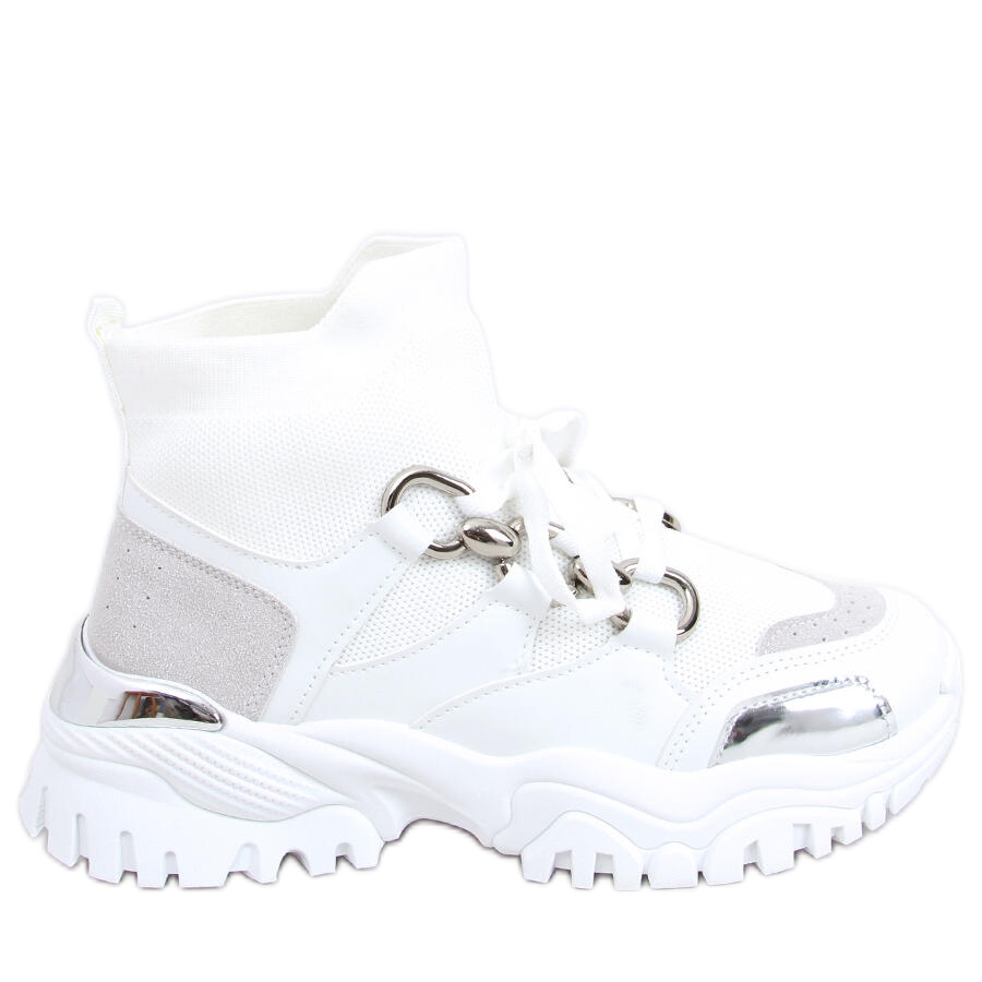 Esittelemme PA1-brändin valkoiset Tergo White -korkeat urheilukengät - täydellinen yhdistelmä tyyliä ja mukavuutta! Nämä ainutlaatuiset naisten tennarit herättävät huomion modernilla muotoilullaan ja muodikkailla yksityiskohdilla, kuten paksulla pohjalla ja kultaisilla aksenteilla, jotka tekevät niistä tyylikkäitä.