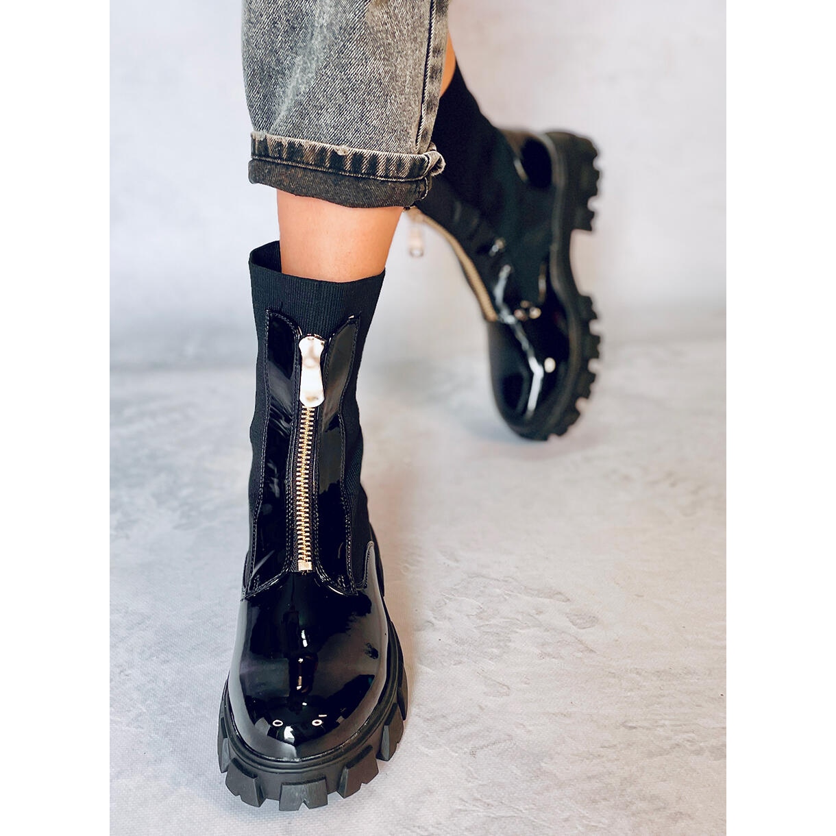 Musta väri lakatulla viimeistelyllä korostaa niiden ylellistä luonnetta, ja koristeellinen vetoketju edessä antaa heille sotilaallisen, mutta samalla naisellisen aksentin. Korkea 5,5 cm paksu pohja ei vain lisää korkeutta, vaan myös varmistaa mukavuuden jokapäiväisessä toiminnassa. Pyöreän kärjen ja litteän kantapään ansiosta nämä työntekijät takaavat mukavuuden koko päivän.