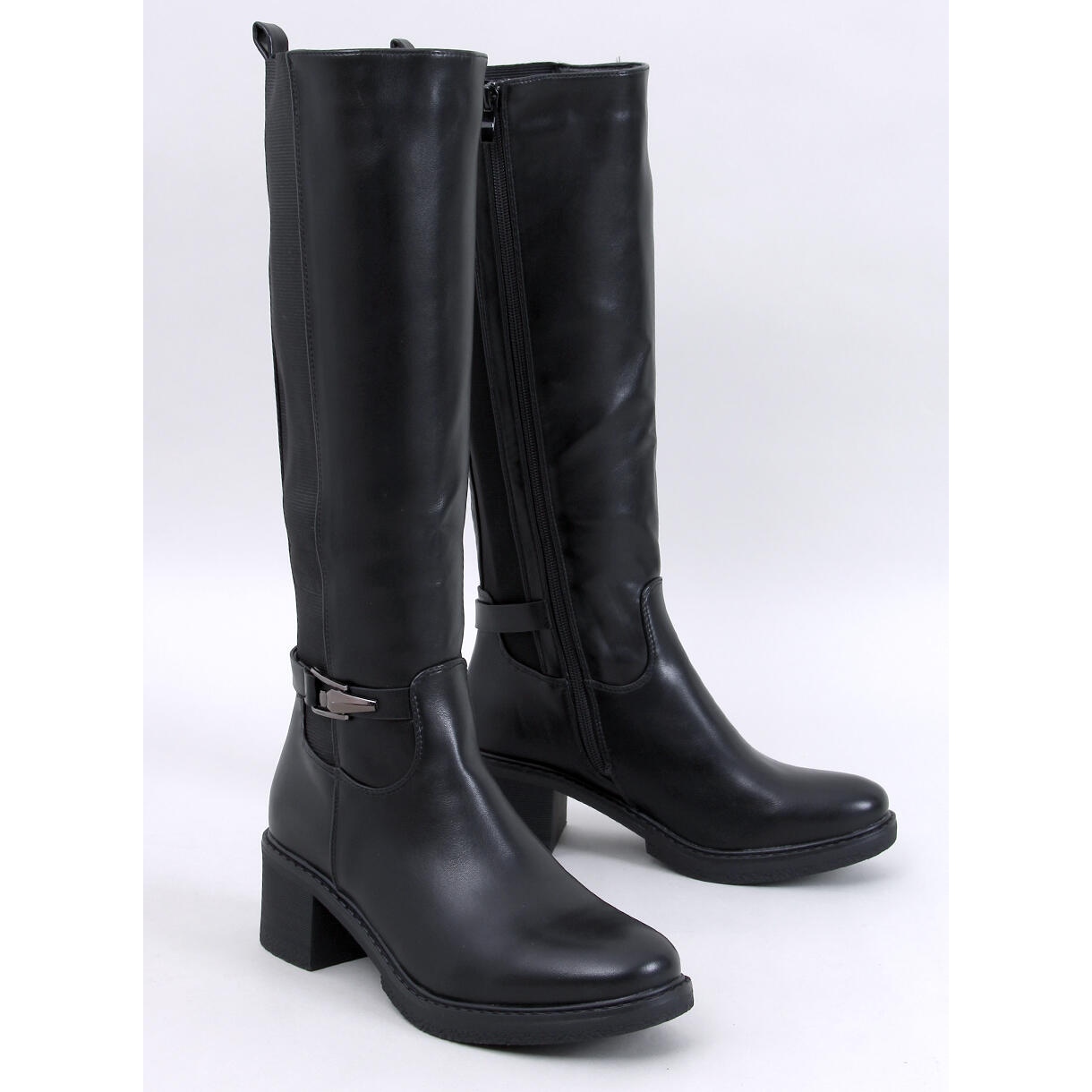 Korkea yläosa, joka ulottuu polviin, on valmistettu kestävästä ekologisesta nahasta ja kumista, mikä tarjoaa paitsi esteettisen ulkonäön, myös vastustuskyvyn sääolosuhteille. Yläosan joustava osa sopeutuu täydellisesti jalan hahmoon, mikä tarjoaa maksimaalisen mukavuuden käytettäessä. Leveä 6 cm: n korkokenkä lisää vakautta, ja sen klassinen leikkaus saa nämä upseerit sopimaan moniin tyyleihin - sekä tyylikkäisiin että rentoihin.