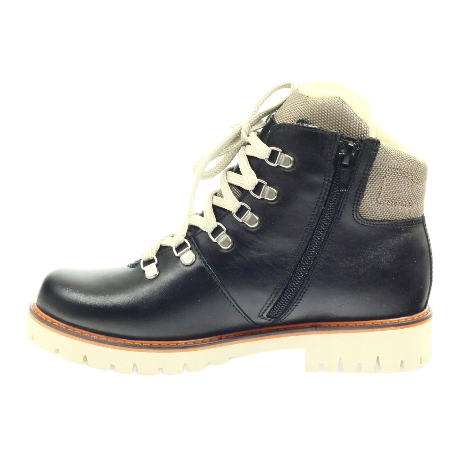 Nämä kengät on valmistettu korkealaatuisimmasta luonnollisesta nahasta ruskean erittäin tummassa, melkein mustassa sävyssä, ja niissä on tekstiilielementtejä herkissä beigen sävyissä. Kokonaisuutta täydentävät tyylikäs vetoketju ja nauhat, jotka eivät ainoastaan takaa ostamisen helppoutta, vaan myös tukevan istuvuuden jalkaan. Lisäetuna on eristys paksulla, pehmeällä kengänturkilla, joka suojaa tehokkaasti jalkoja kylmältä ja saa lapset tuntemaan olonsa mukavaksi myös kylminä päivinä.