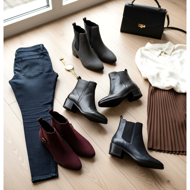 Nilkkurit ovat täydellinen kompromissi eleganssin ja käytännöllisen mukavuuden välillä. Työntekijöille, jotka viettävät suurimman osan päivästä toimistossa ja liikkuvat vähän, 3-5 cm korkokengät voivat olla erinomainen valinta. Tällaiset korkeudet eivät väsytä ja lisäävät samalla eleganssia ja itseluottamusta siluettiin. Mustat nilkkurit ovat klassikko, mutta kannattaa kokeilla myös ruskean, viininpunaisen tai laivastonsinisen kanssa. Muista vain, että kantapään korkeutta ei kannata miettiä liikaa – paljon kävelevät työntekijät ovat kiitollisia valittaessaan saappaat, joissa on tasainen pohja tai matala, mukava kantapää. Nilkkurit ovat trendikäs malli, joka toimii täydellisesti moderneissa toimistoissa. Voit käyttää niitä farkkujen (jos se on rento), savukehousujen tai tyylikkäiden hameiden kanssa.