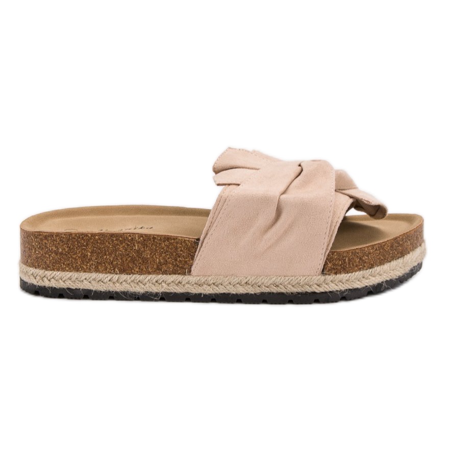 Korkea, 4 cm korkea, synteettisestä pohjasta valmistettu alusta tarjoaa riittävän iskunvaimennuksen ja kulutuspinta takaa varman askeleen. Nämä varvastossut ovat slip-on, mikä tekee niiden pukemisesta ja riisumisesta helppoa. Ruskean värin ja minimalistisen ulkonäön ansiosta ne sopivat moniin kesätyyleihin - arkisista setistä tyylikkäämpiin asuihin.