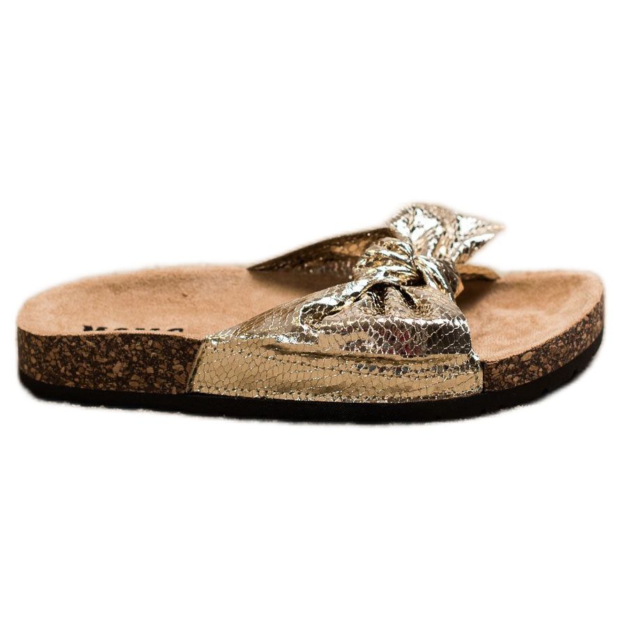 Lisäetuna ovat hienovaraiset rusetit, jotka antavat varvastossuille viehättävän luonteen ja tekevät niistä täydellisen täydennyksen niin arkeen kuin vapaamuotoiseen asuun. Niiden kultainen väri korostaa täydellisesti mitä tahansa tyyliä ja lisää siihen eleganssia.