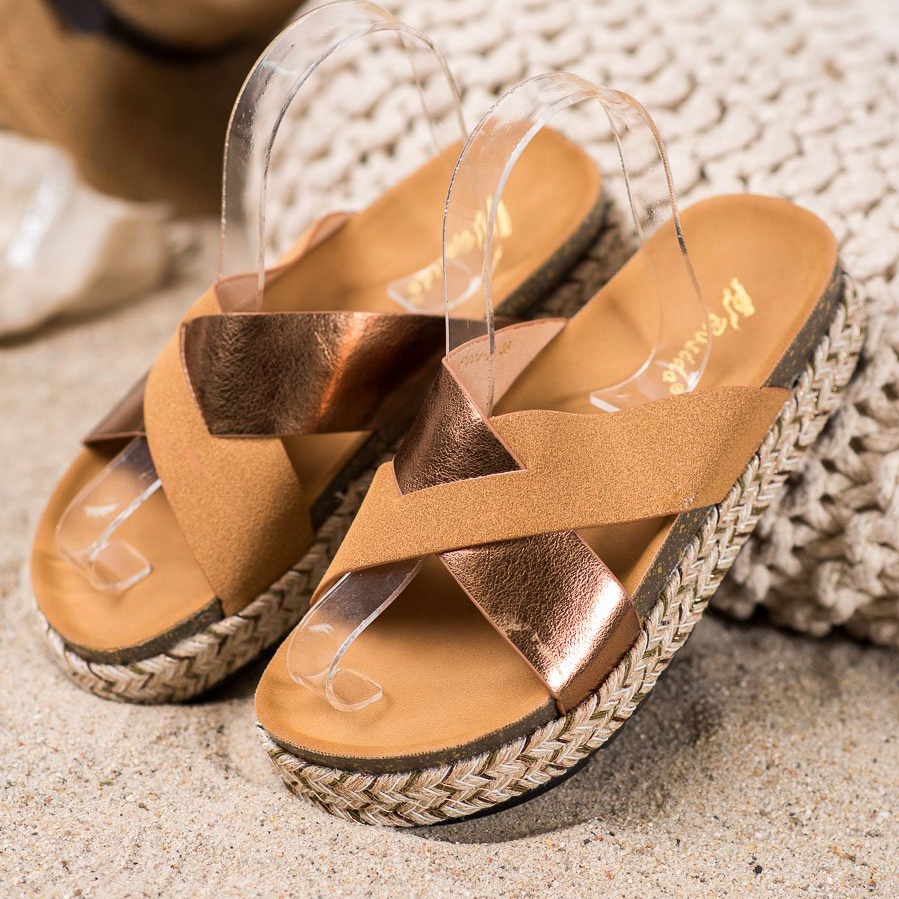 Yksityiskohdat: SHELOVET Tossut alustalla ruskea keltainen