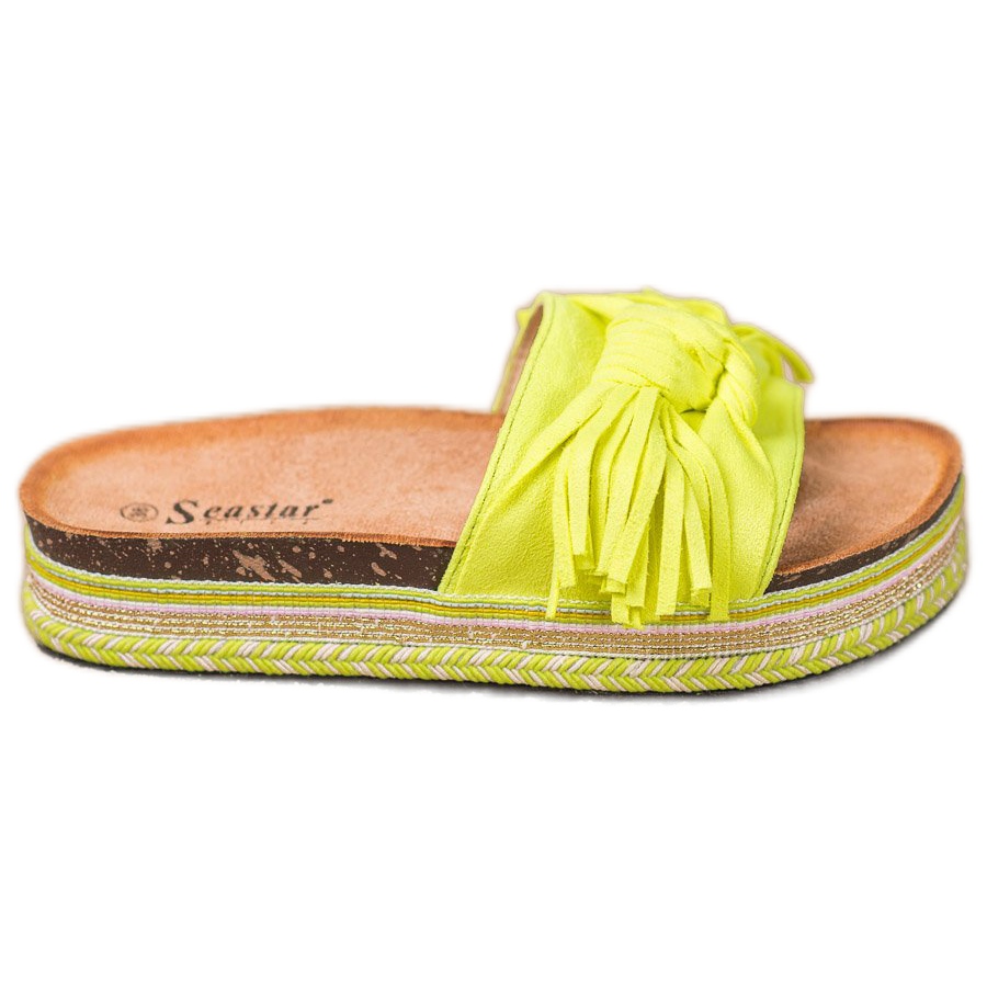 Löydä tyyliä ja mukavuutta mehukkaan keltaisilla Seastar-varvastossuilla! Jos etsit täydellisiä kesäkenkiä, jotka eivät ole vain muodikkaita vaan myös mukavia, pidät varmasti tästä mallista. Varvastossut erottuvat alkuperäisistä hapsuista, jotka antavat niille ainutlaatuisen luonteen ja tekevät niistä täydellisen täydennyksen sekä uima-asuihin että kaupunkiasuihin.