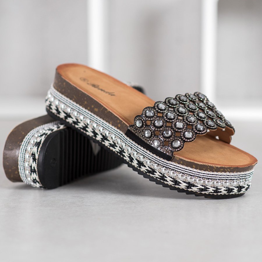 Yksityiskohdat: Renda Tossut koristeilla alustalla musta