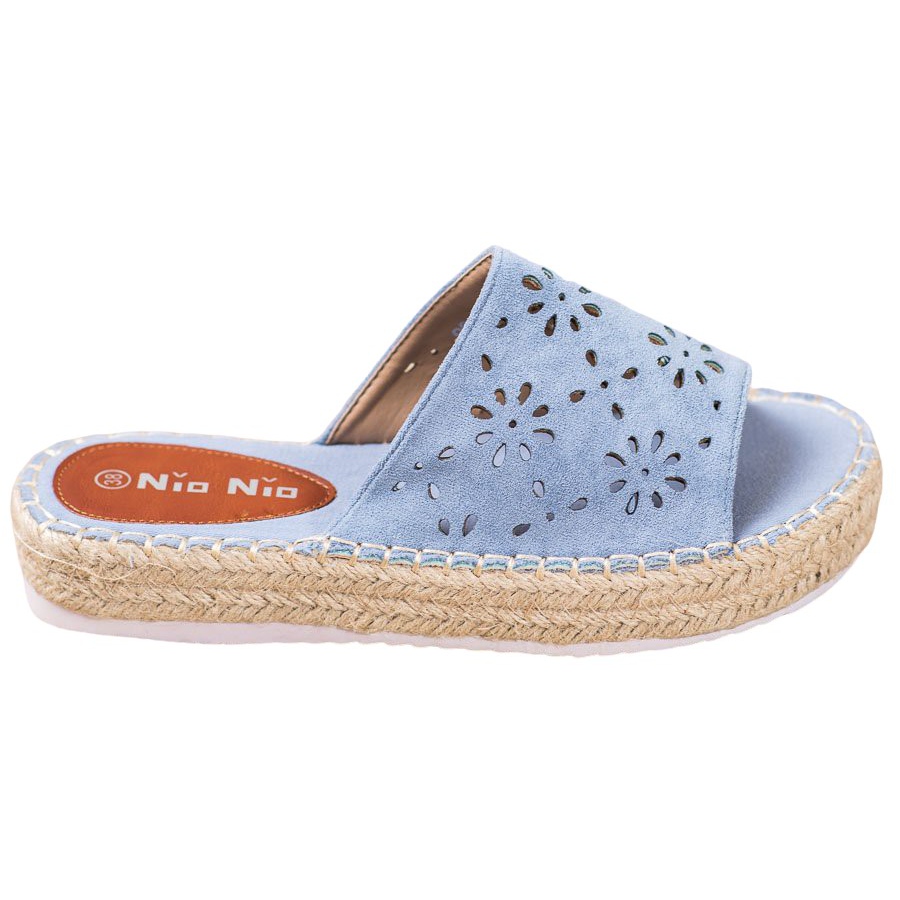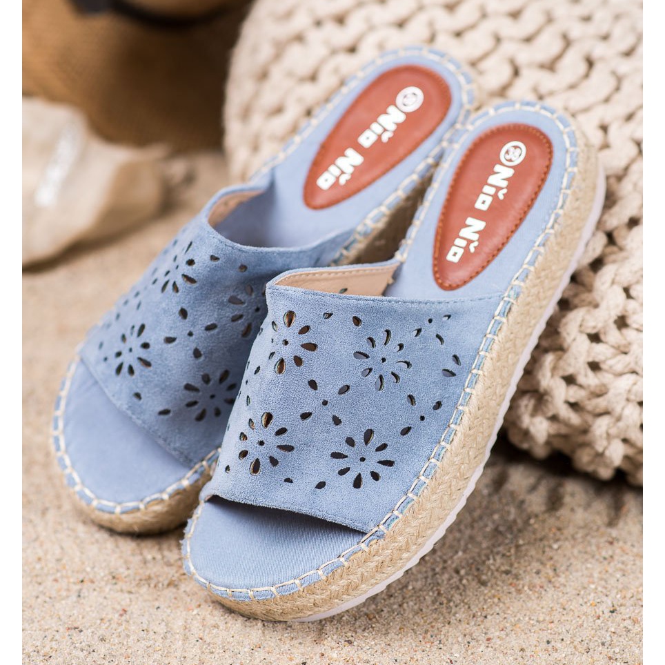 Tutustu ainutlaatuisiin Nio Nio -varvastossoihin olkialustalla kauniissa sinisessä värissä! Nämä naisten varvastossut, jotka on valmistettu korkealaatuisesta ekologisesta nahasta mokkaviimeistelyllä, yhdistävät modernin muotoilun ja käyttömukavuuden. Harjakattoinen kuvio lisää keveyttä ja ainutlaatuista luonnetta, mikä tekee niistä täydellisen lisäyksen kaikkiin kesätyyliin.