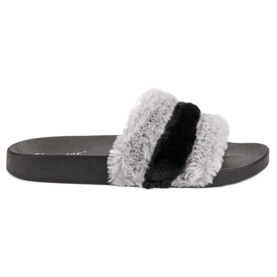 Tutustu Seastarin harmaan turkisvarvastossojen tarjoamaan poikkeukselliseen mukavuuteen ja tyyliin. Nämä tyylikkäät liukukengät ovat täydellinen valinta jokaiselle naiselle, joka etsii alkuperäisiä ratkaisuja kevääseen ja kesään. Harmaan ja mustan turkin käytön ansiosta nämä varvastossut erottuvat paitsi modernista ulkonäöstään, myös pehmeyydestään, joka saa sinut tuntemaan olosi pilvessä.