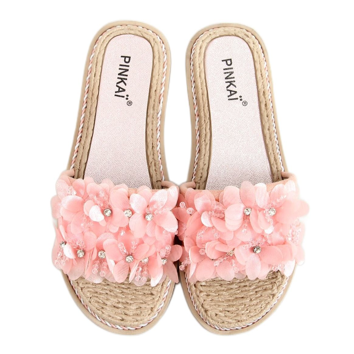 Yksityiskohdat: Tossut vaaleanpunaisilla kukilla LS003 Pinkki vaaleanpunainen