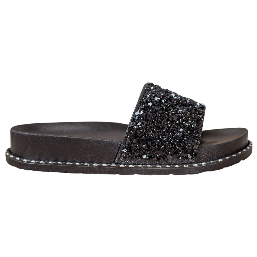 VINCEZA-varvastossut erottuvat paitsi esteettisyydestään myös huolellisesta valmistuksesta korkealaatuisista materiaaleista. Eko-nahka antaa niille tyylikkään ilmeen, ja lisäkoristeet strassien ja nasttojen muodossa korostavat niiden muodikas luonnetta. Lisäksi matala, 3,5 cm korkea alusta tekee siitä mukavan käyttää koko päivän.