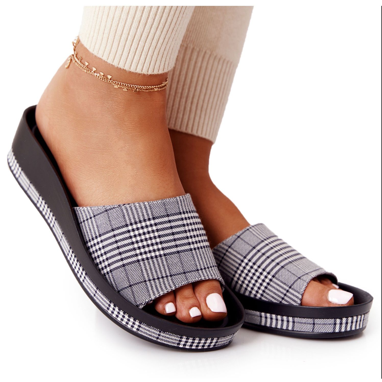 Yksityiskohdat: Tossut Wedge Vinceza 21-17113 Grey Check valkoinen musta harmaa