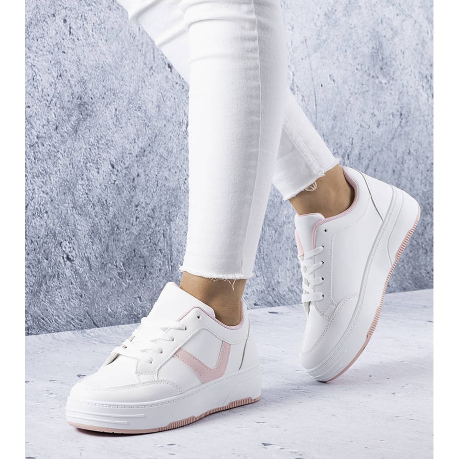 Yksityiskohdat: BM Trépanin valkoiset ja vaaleanpunaiset alustalenkkarit valkoinen