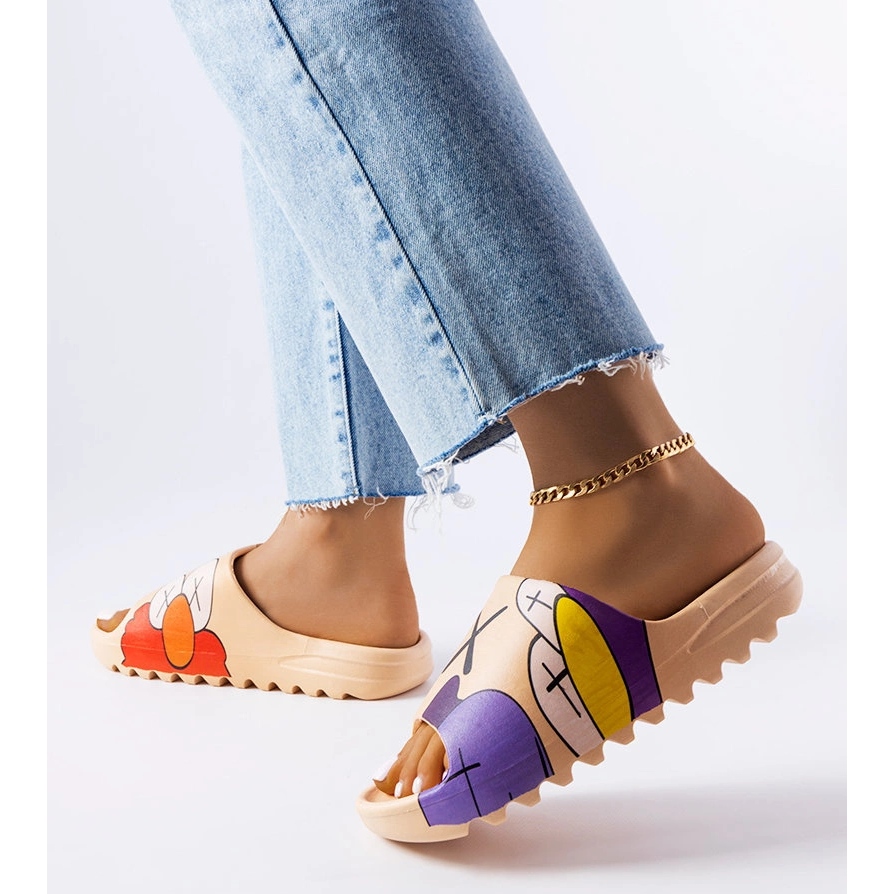 - Malli: printeillä varustetut varvastossut
