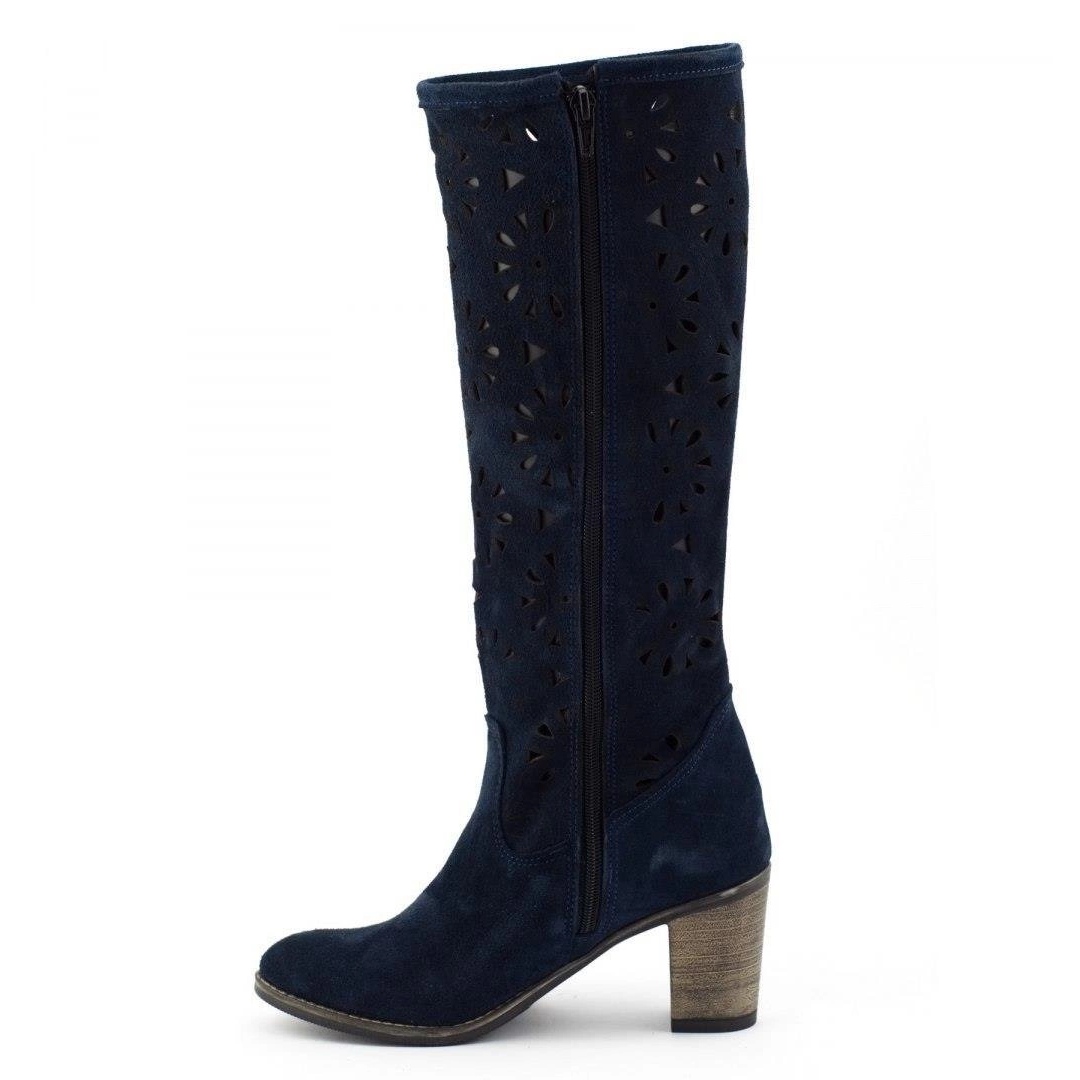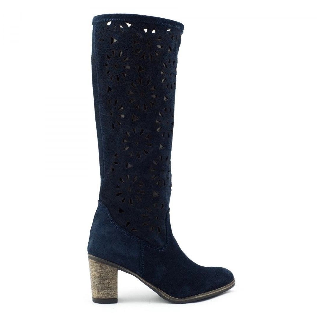 Tyylikäs ja mukava - Olivier -naisten saappaat, jotka on valmistettu luonnollisesta nubuckista (mokkanahka) yhdistävät muodikkaan ilmeen mukavuuteen. Ulkoiset, geometrinen yläosa antaa kengille keveyden ja hengittävyyden, jonka ansiosta ne ovat hienoja keväällä ja syksyllä, ja lämpiminä päivinä voit käyttää niitä jopa ilman sukkahousuja. Kiinteä, synteettinen pohja ja vakaa pylväs, jonka korkeus on 7,5 cm, tarjoavat hyvän eristyksen maasta ja mukavuutta pidemmällä kävelyllä.