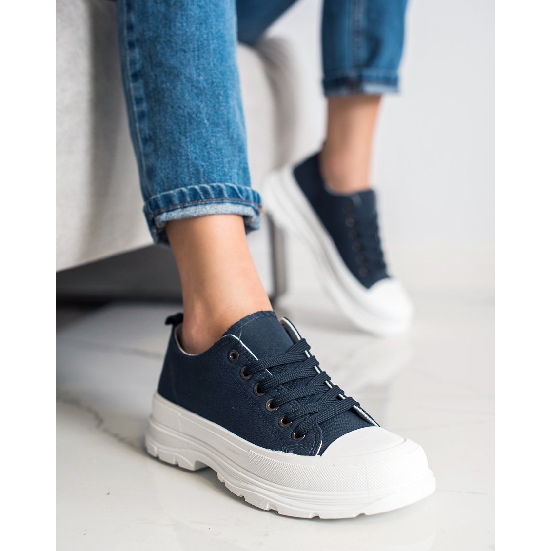 Yksityiskohdat: SHELOVET Tummansiniset lenkkarit lavalla tummansininen