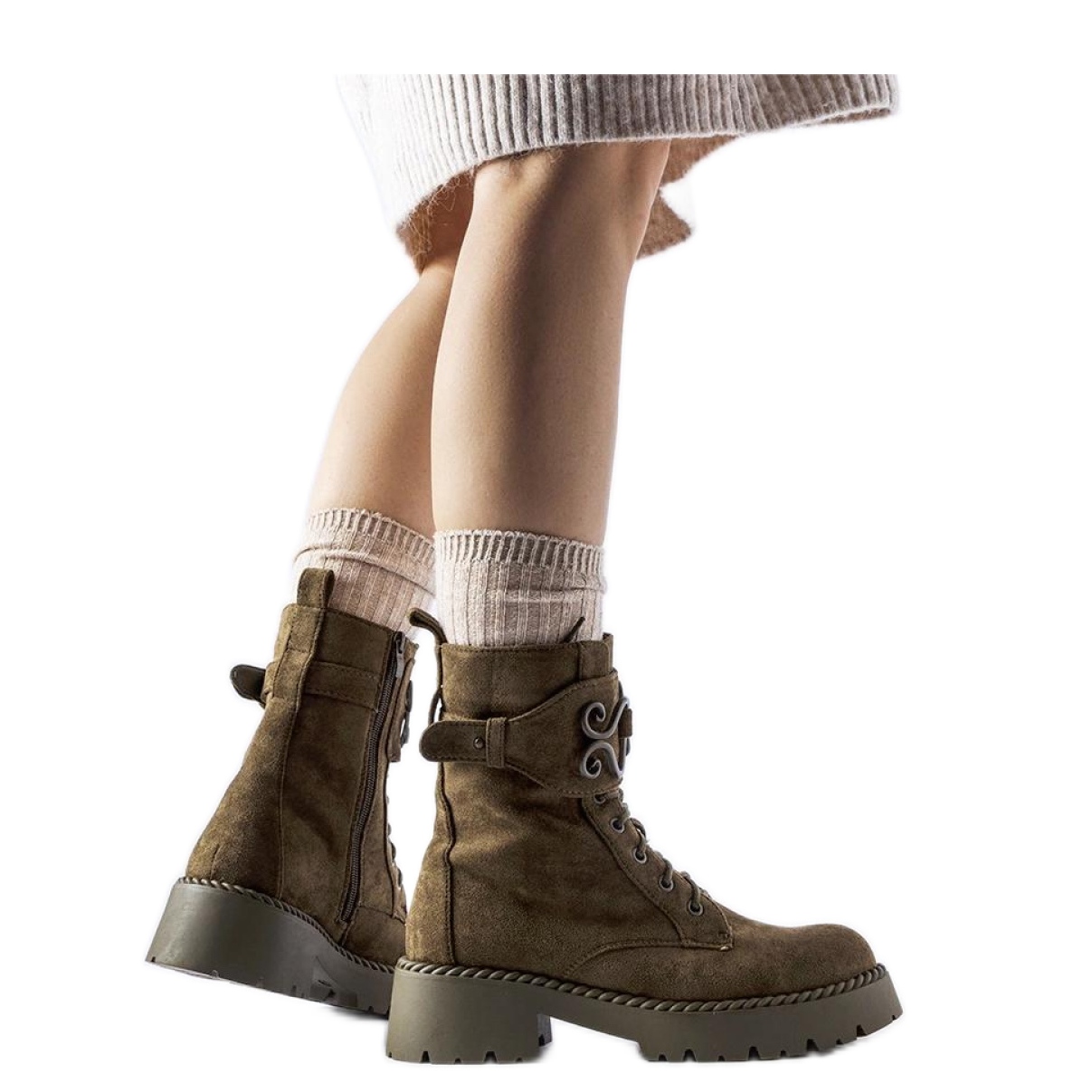 Tummanvihreät koristeelliset eko-zamsz-työntekijät ovat täydellinen valinta naisille, jotka haluavat yhdistää muodin mukavuuteen. Nämä tyylikkäät kengät, jotka ovat saatavana syksyn/talvikokoelmassa, erottuvat paitsi värien, myös erittäin laadukkaan ekologisen nahan huolellisen työntekijän kanssa mokkanahkatyylissä. Heidän alkuperäinen ulkonäkö herättää varmasti huomiota ja lisää jokaisen talven tyylityksen luonteen.