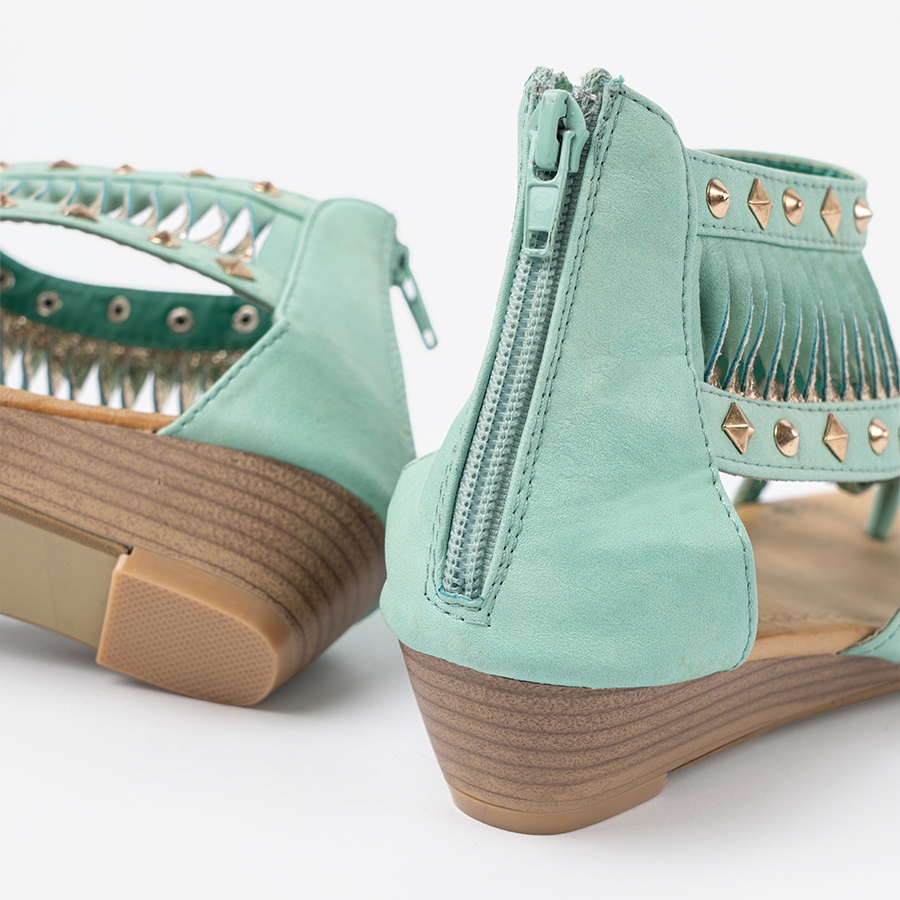** Shelvt -turkoosi sandaalit, joissa on boho -nastat **