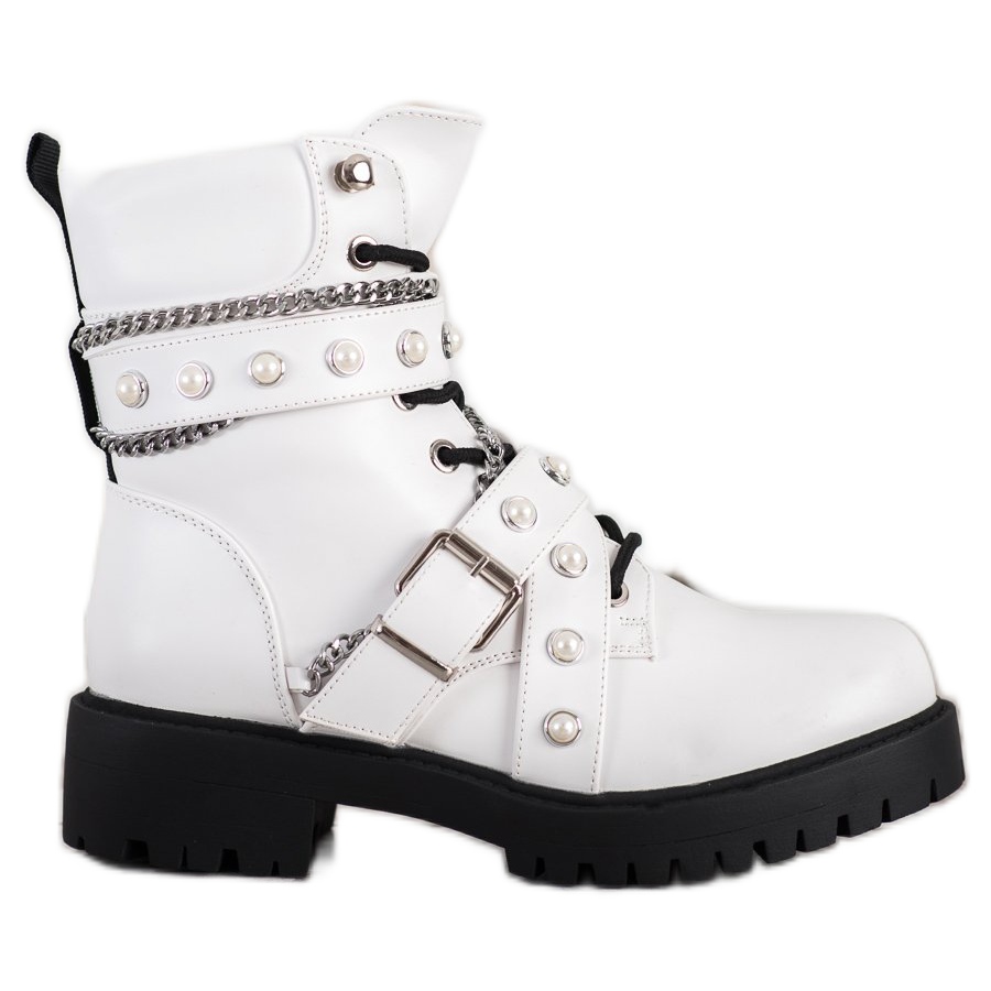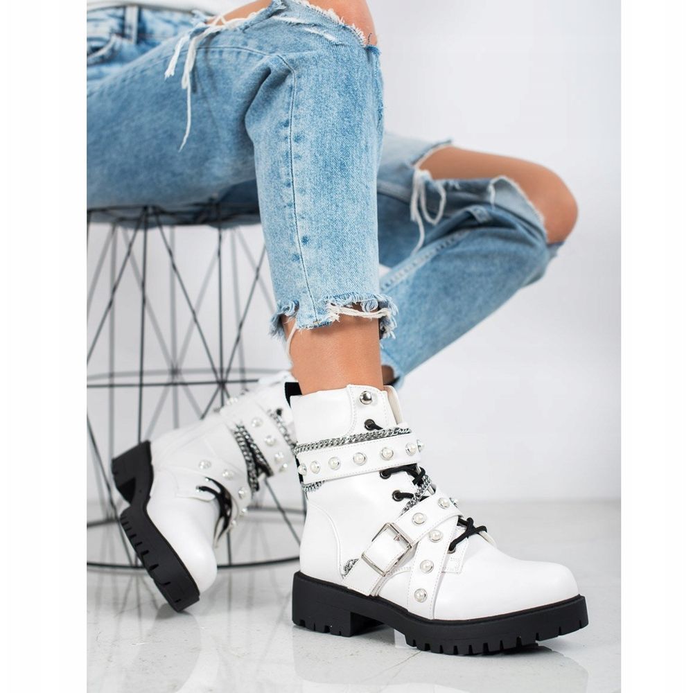 Esittelemme Seastar Workers with Chains -ketjut tyylikkäässä valkoisessa värissä, joissa yhdistyvät rento tyyli rock-reunaan. Nämä naisten bovver-saappaat ovat täydellinen valinta kylmempiin syksyn ja talven päiviin mukavuuden ja lämmön takaavan sisäeristyksen ansiosta.