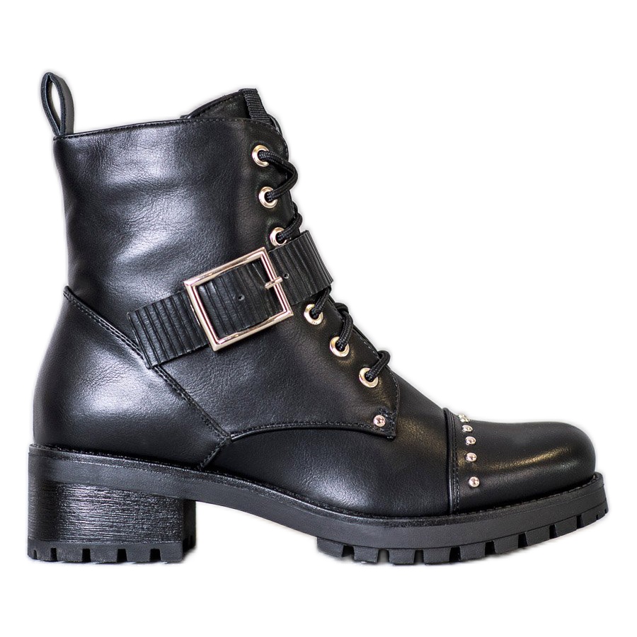 Näille kengille on ominaista mielenkiintoiset nauhoitukset edessä ja käytännöllinen vetoketju sivulla, mikä helpottaa kenkien pukemista ja riisumista. Lisäksi koristeellinen vyö soljella ja strassit lisäävät tyyliin rockaksenttia, joka sopii täydellisesti naisille, jotka haluavat erottua joukosta.