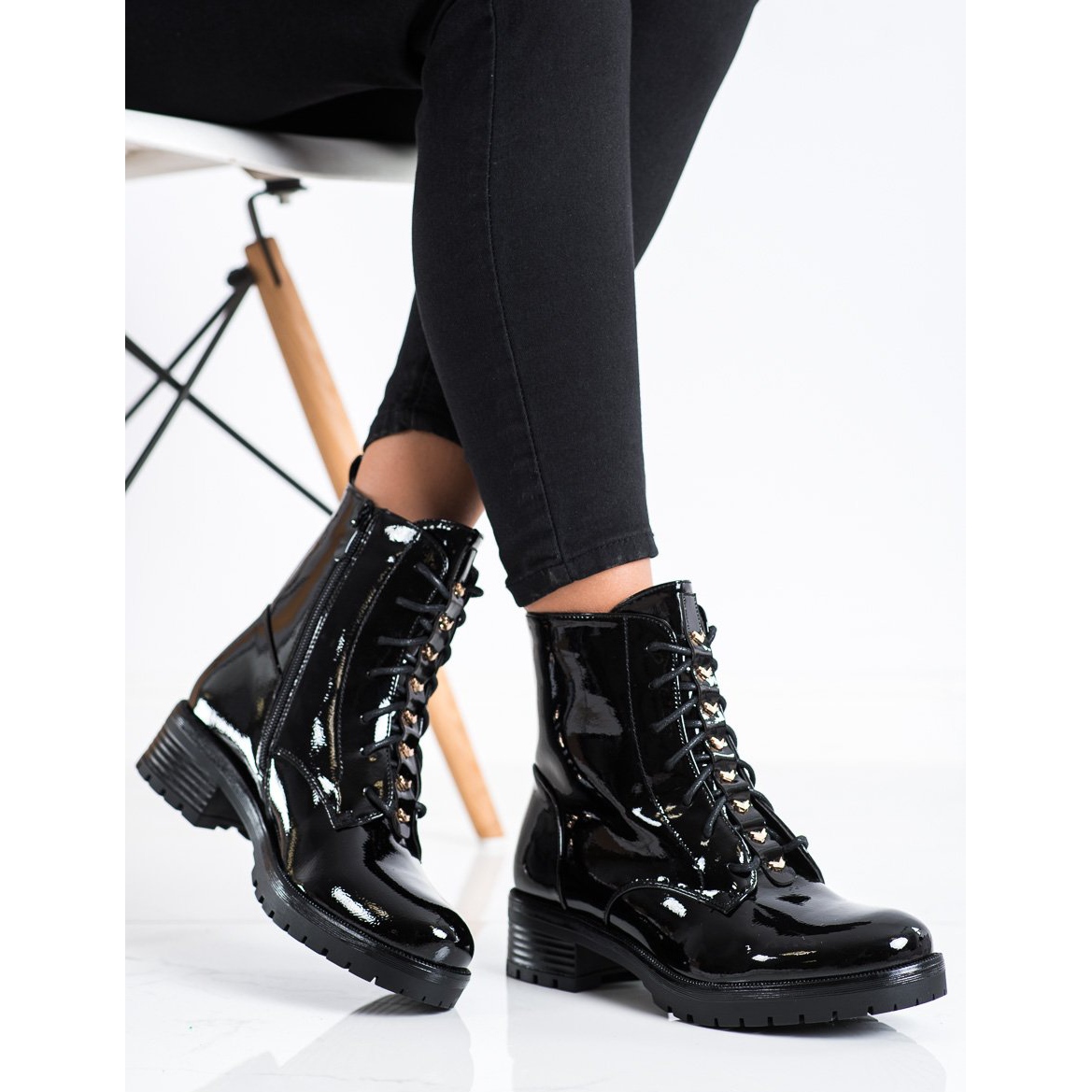 Yläleveys 23 cm ja yläkorkeus 14 cm saavat työntekijät istumaan täydellisesti jalkaan ja niiden muodikas, lakattu ulkonäkö herättää huomiota. Nämä nilkkurit ovat välttämättömiä jokaisessa vaatekaappissa, varsinkin syys-talvikaudella.