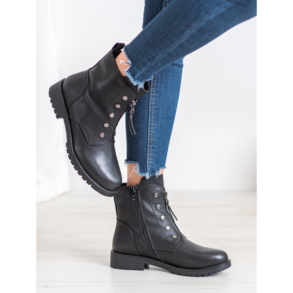 Esittelemme upeat J. Star Workery Na Zipper -saappaat klassisessa mustassa värissä, jotka ovat täydellinen valinta muodikasta tyyliä ja mukavuutta arvostaville naisille. Nämä tyylikkäät kengät erottuvat rento ja rock-luonteeltaan, ja ne sopivat täydellisesti tulevaan syys-/talvikauteen.