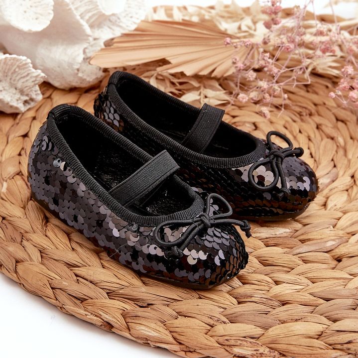 Inna marka Tyttöjen balleriinit koristeltu paljeteilla ja mustalla keulalla