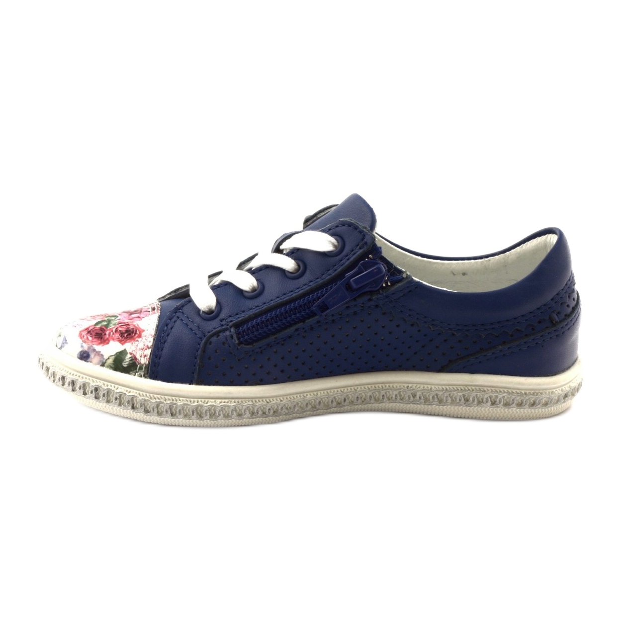 Yksityiskohdat: Tyttöjen merivoimien siniset nahkakengät kukilla 85524 bartek sininen