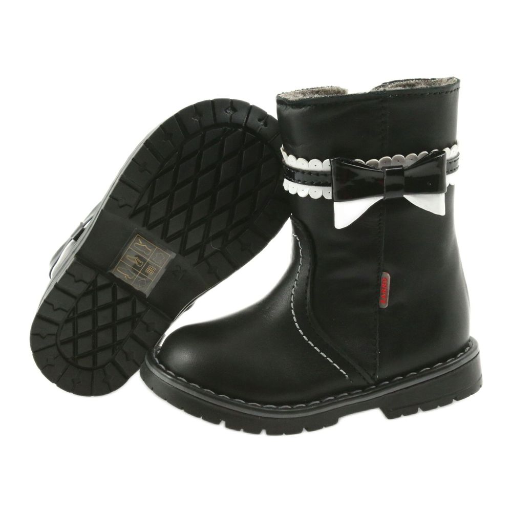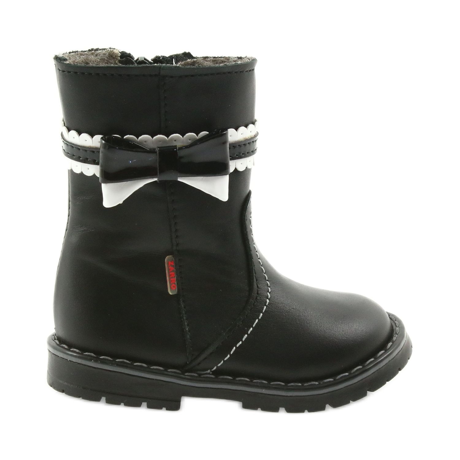 Zarro 87/03 tyttöjen mustat saappaat hurmaavalla rusetilla ovat täydellinen valinta pienelle naisellesi kylmiin päiviin. Valmistettu korkealaatuisesta luonnonnahasta, ne tarjoavat paitsi esteettisen ulkonäön myös kestävyyden ja käyttömukavuuden. Turkiseristetyn kengän sisäosan ansiosta lapsesi jalat ovat aina lämpimät, jopa kylmimpinä päivinä.
