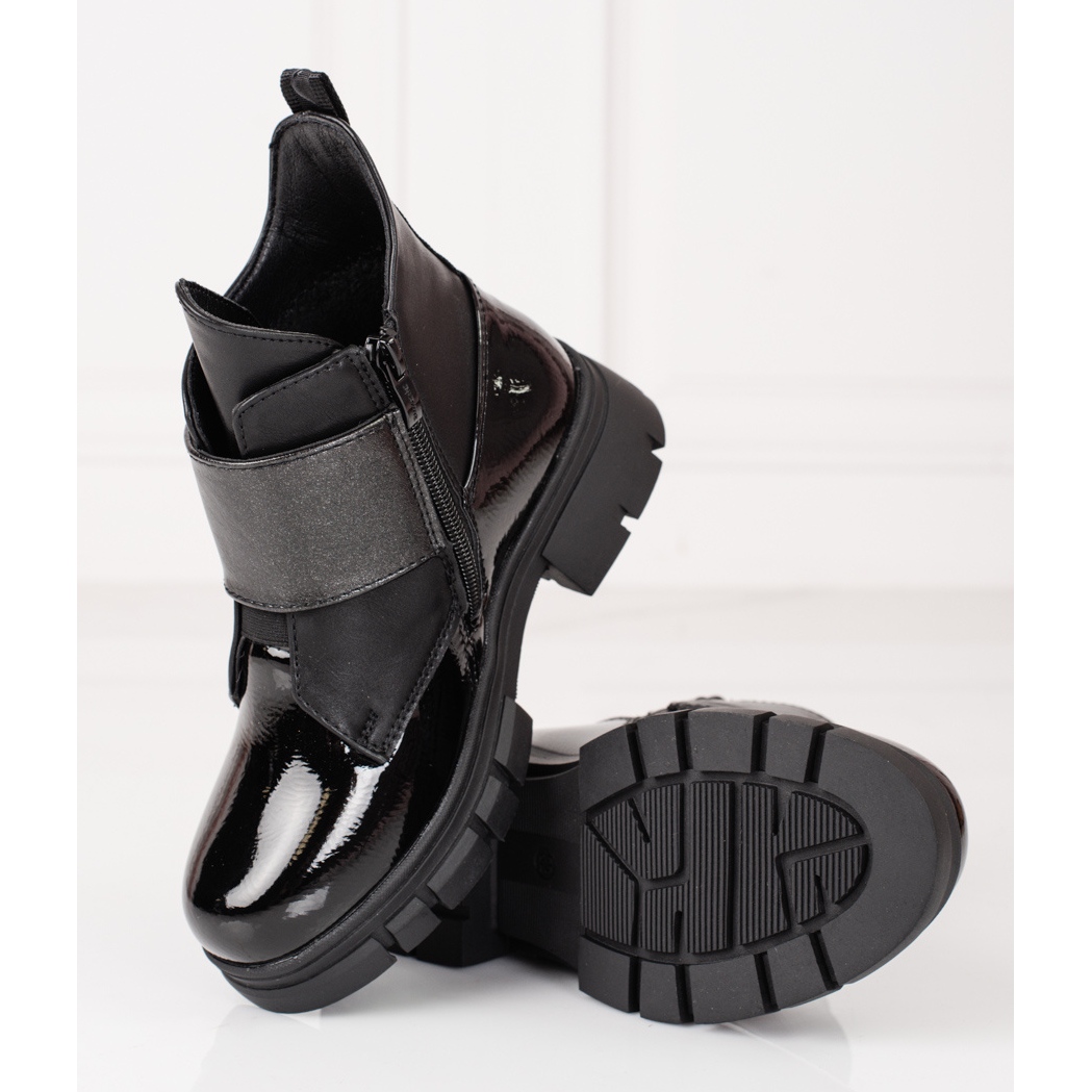 Tyttöjen saappaat lakatusta ekologisesta Shelovet-nahasta musta
