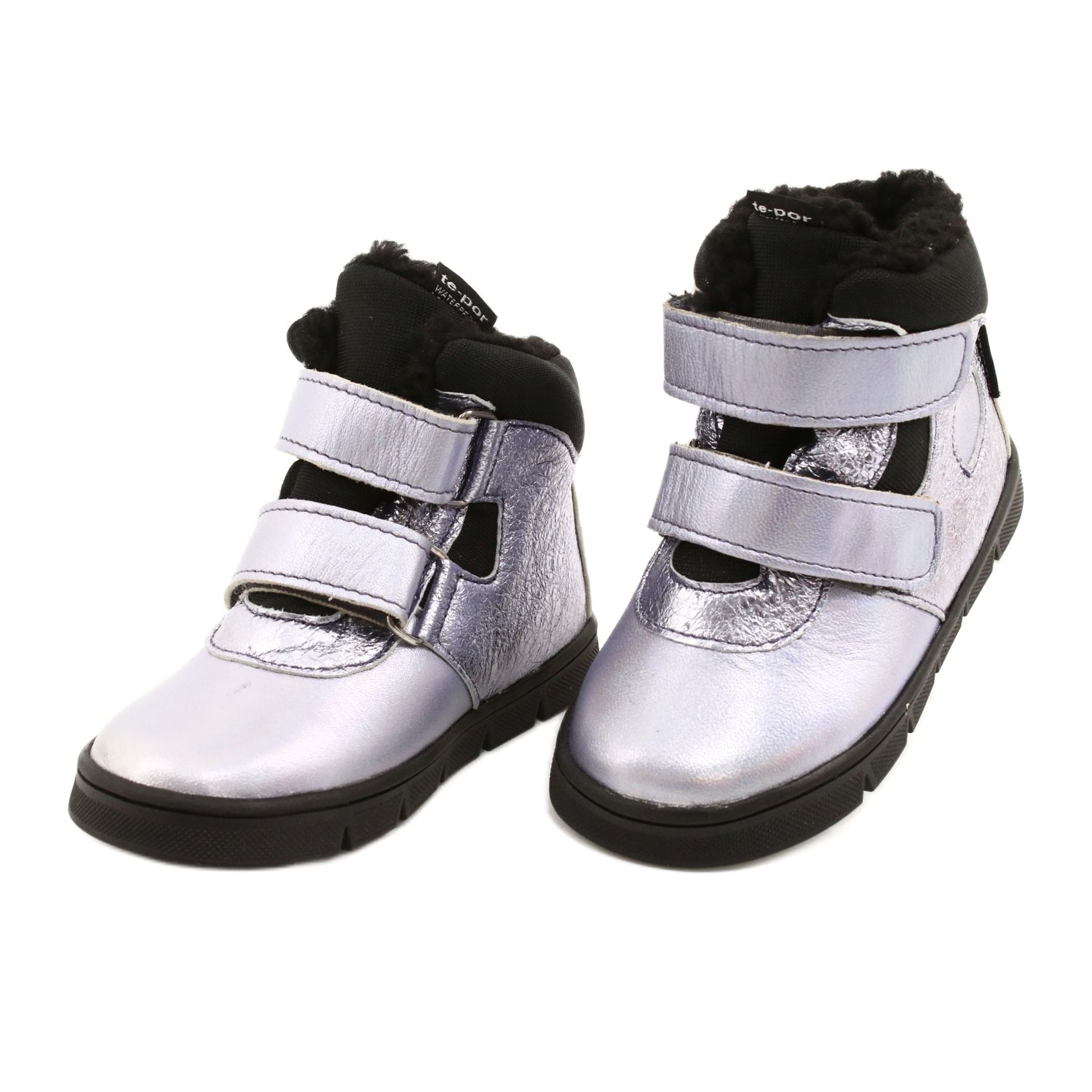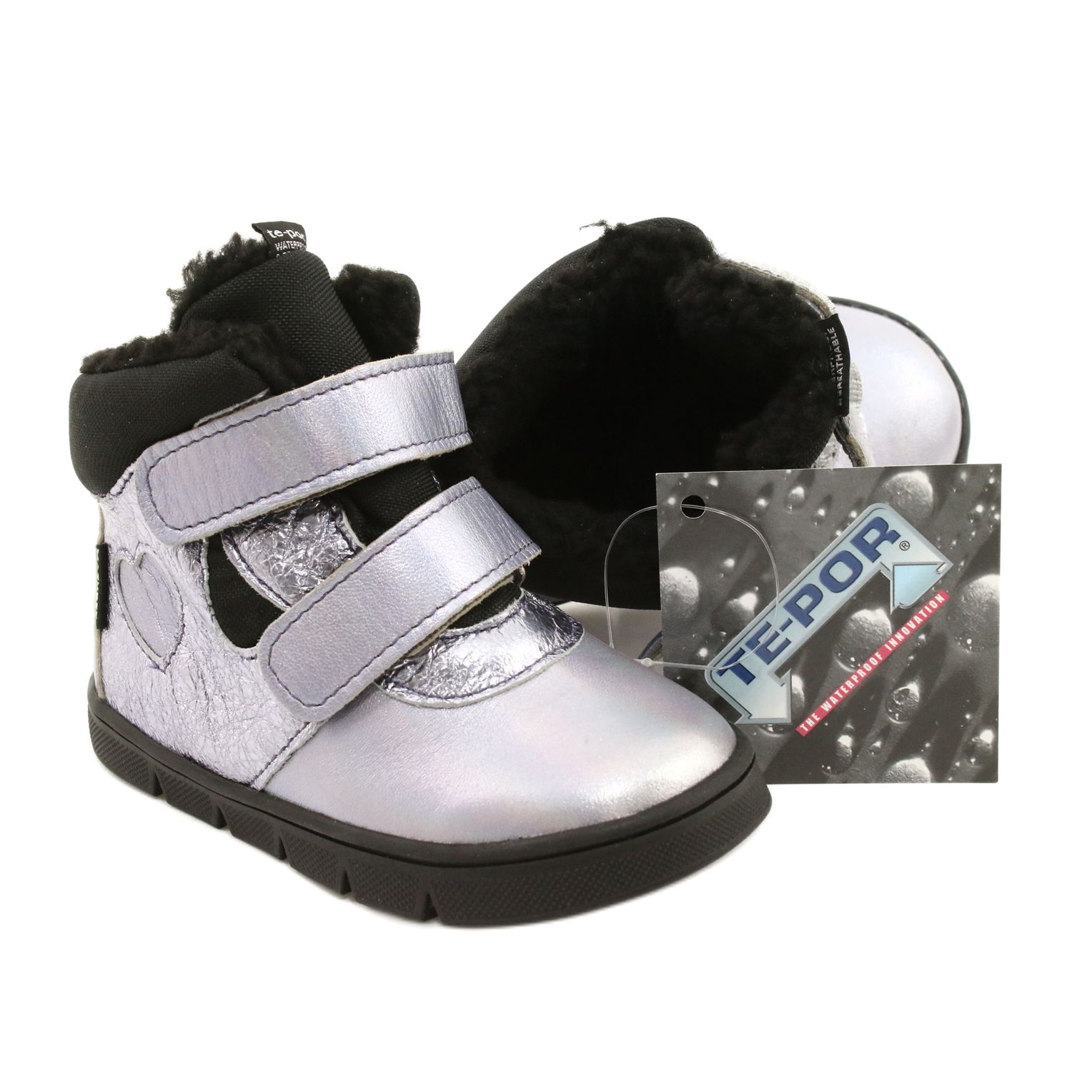 Lämpimät ja mukavat tytöille tehdyt talvikengät, jotka on valmistettu luonnonahasta yhdistettynä materiaaliin, varustettu vedenpitävällä Te-Por-kalvolla. Malli tarjoaa suojaa kosteutta ja kylmää, ja käytännöllinen tarranauha on helpompaa laittaa ja sopeutua nopeasti. Pehmeällä turkista eristetty sisustus, jäykistetty kantapää stabiloi nilkan, ja ei -liuskula -pohja takaa hyvän tarttuvuuden liukkailla pinnoilla.