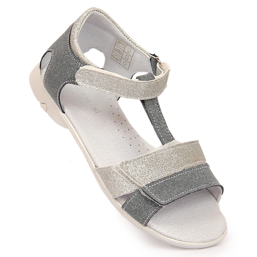 Yksityiskohdat: Tyttöjen sandaalit tarranauhalla hopea Kornecki 6323 harmaa