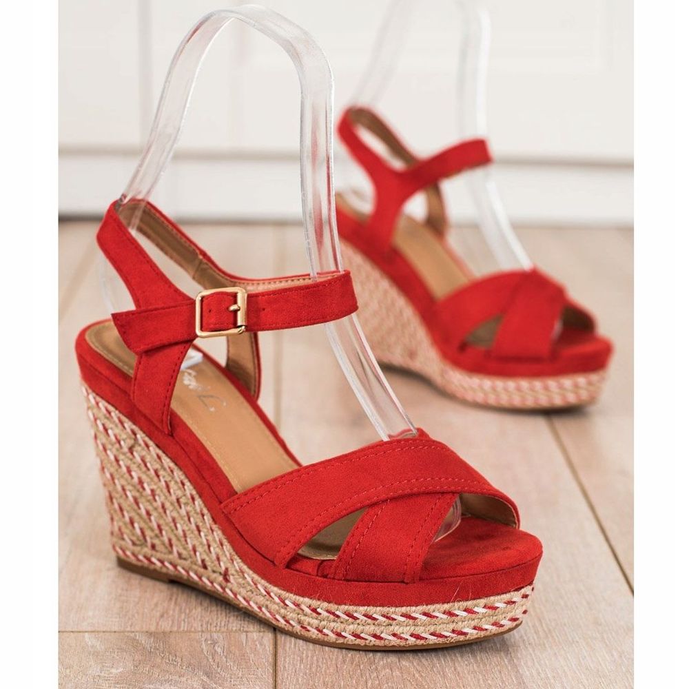 SHELOVET SHELOVET Tyylikkäät kiilamaiset sandaalit punainen