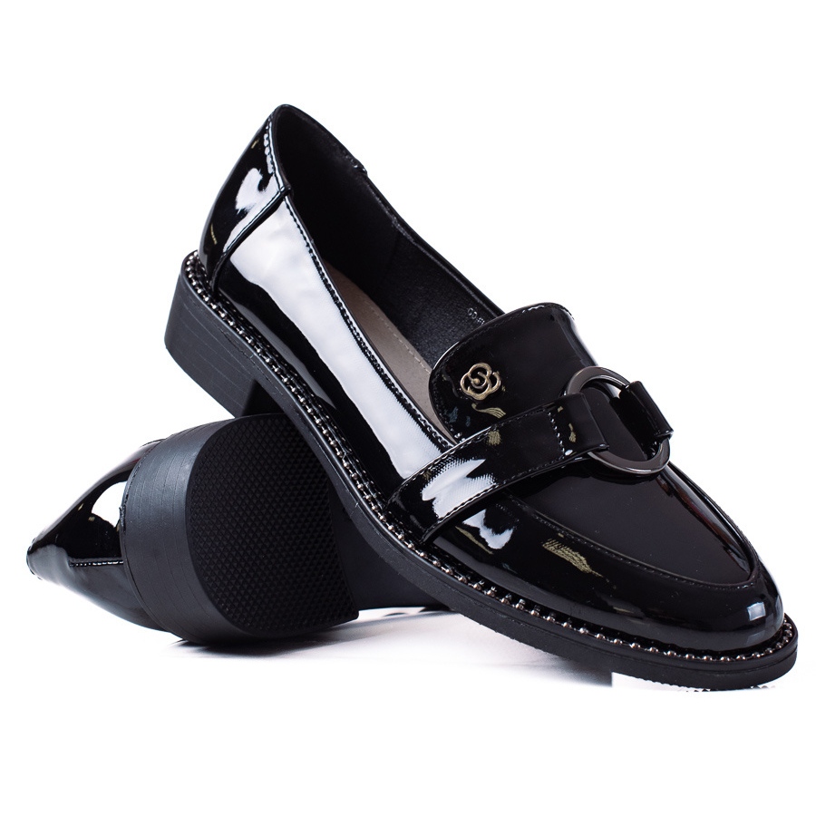 Tälle tuotteelle on ominaista universaali musta väri, jonka ansiosta se on erittäin helppo yhdistää erilaisiin asuihin. Ulkomateriaalina 100 % keinonahasta ja ekologisesta kiiltonahasta valmistetut kengät antavat kengille tyylikkään kiillon, joka vangitsee silmää ja lisää tyylikkyyttä. Luonnonnahkaisen sisäosan ansiosta nämä mokasiinit eivät ole vain tyylikkäitä, vaan myös mukavia käyttää.