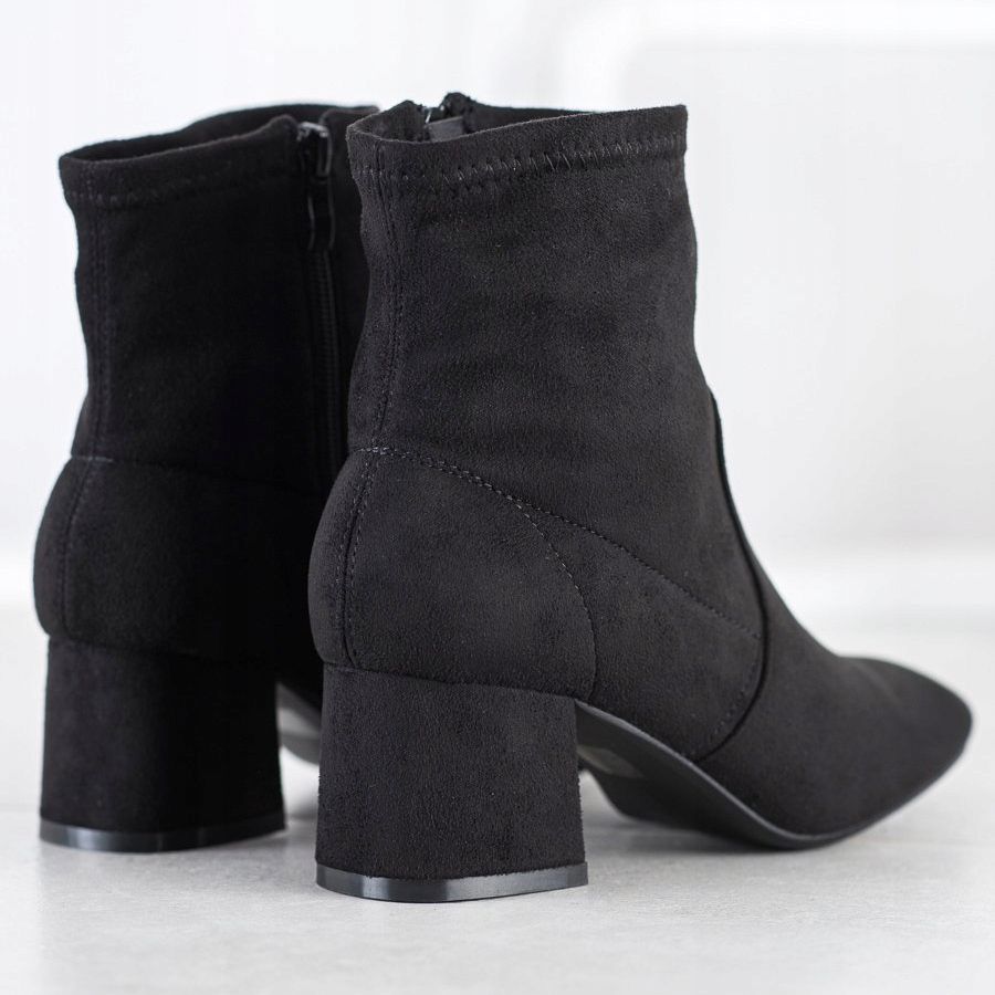 5,5 cm:n kantapään ja 12-13 cm:n yläosan ansiosta nämä saappaat tarjoavat erinomaisen tuen ja vakauden jalassa. Pyöreä kärki ja jäykistetty kantapää lisäävät eleganssia ja sileä synteettisestä materiaalista valmistettu pohja takaa arjen mukavuuden.