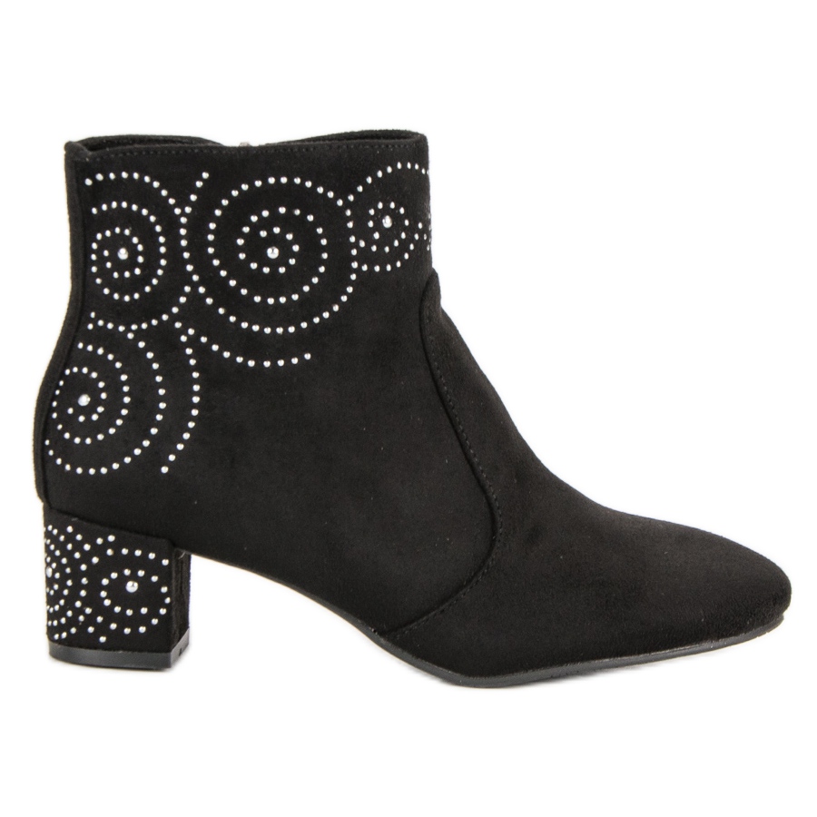 Pyöreän varpaan ja vetoketjun ansiosta niiden laittaminen jalkoihin on nopeaa ja mukavaa. 5 cm:n koron korkeus tekee niistä paitsi tyylikkäitä, myös käytännöllisiä - täydellinen jokapäiväiseen muotoiluun. Lisäksi mokkanahkaan ja kantapäässä olevat strassit antavat niille ainutlaatuisen luonteen ja erottavat ne muista malleista.
