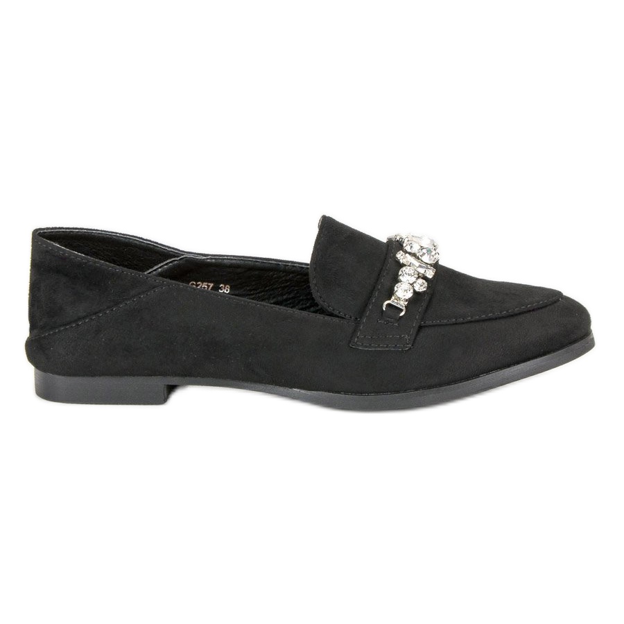 Esittelemme Bestelle-brändin elegantteja mustia mokasiineja, joissa yhdistyvät mukavuus ja tyyli. Prioriteetit ovat jalkojen mukavuus ja jalkineiden korkea esteettinen laatu, mikä heijastuu täydellisesti näissä ainutlaatuisissa kengissä. Mustat slip-on mokkasiinit, jotka on koristeltu hienovaraisilla läpinäkyvillä kristalleilla edessä, herättävät varmasti huomion ja täydentävät täydellisesti monia erilaisia tyylejä.