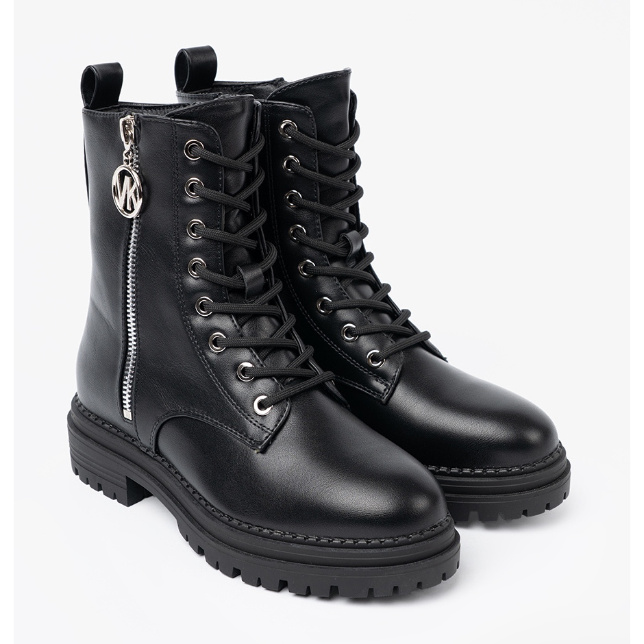 Mustat Shelvtin työntekijöillä on pyöreä nenä ja käytännöllinen kiinnitys nauhoituksen ja liukusäätimen muodossa, mikä helpottaa laittamista. 26 cm: n yläosan leveyden ansiosta ne mukautuvat täydellisesti jalkaan, ja heidän alkuperäiset pakkauksensa laatikon muodossa tekevät niistä sopivia täydelliseen lahjaan.